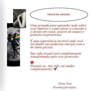 3️⃣ Terceira Sessão: Uma jornada para aprender tudo sobre sexo tântrico e como ativar a conexão e o desejo em casal, através de praticas respiratórias e toques.